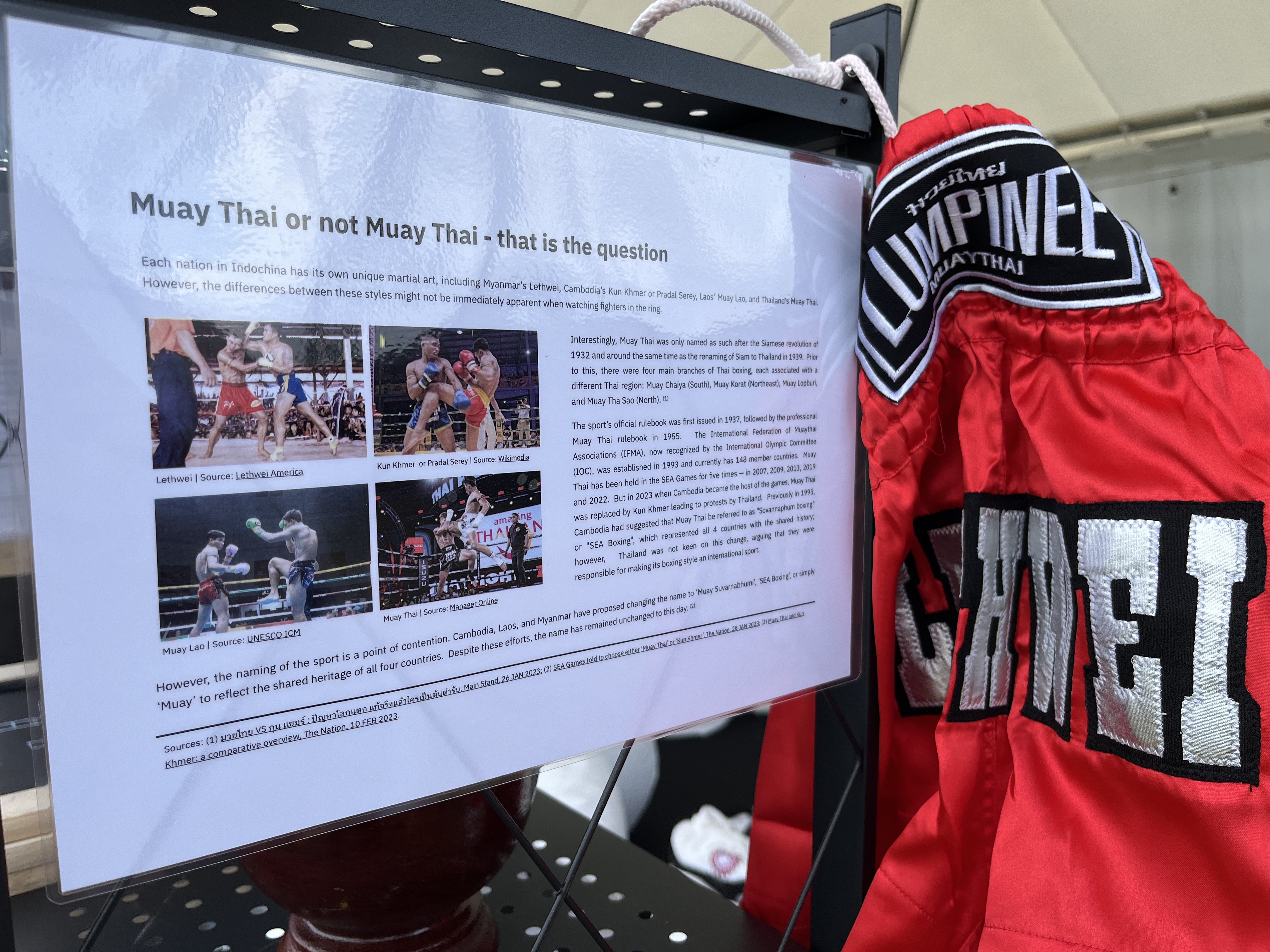Sources: (1) มวยไทย VS กุน แขมร์ : ปัญหาโลกแตก แท้จริงแล้วใครเป็นต้นตำรับ, Main Stand, 26 JAN 2023; (2) SEA Games told to choose either ‘Muay Thai’ or ‘Kun Khmer’, The Nation, 28 JAN 2023; (3) Muay Thai and Kun Khmer: a comparative overview, The Nation, 10 FEB 2023.
