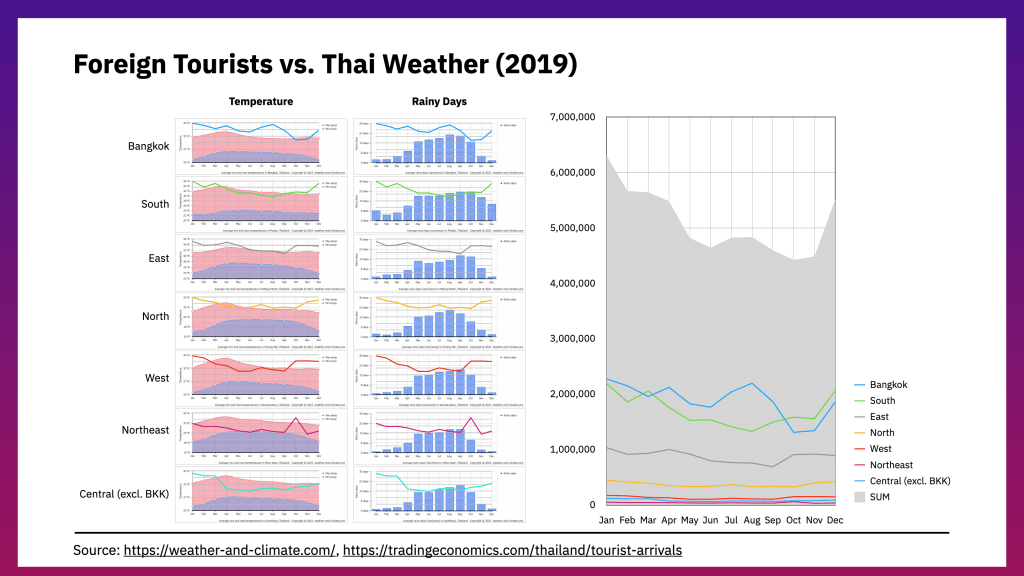 Source: https://weather-and-climate.com/, https://tradingeconomics.com/thailand/tourist-arrivals
