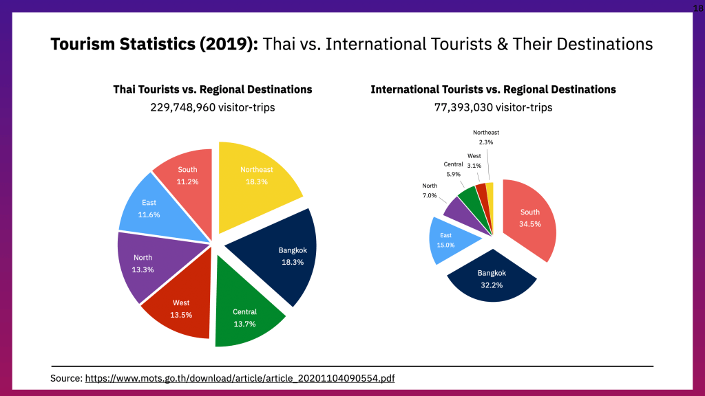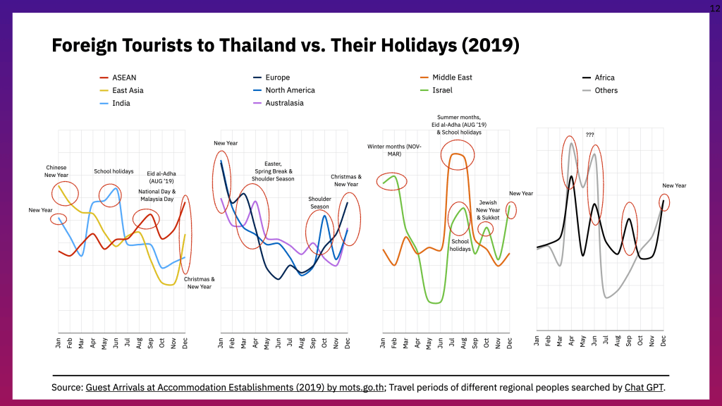 Source: Guest Arrivals at Accommodation Establishments (2019) by mots.go.th; Travel periods of different regional peoples searched by Chat GPT.