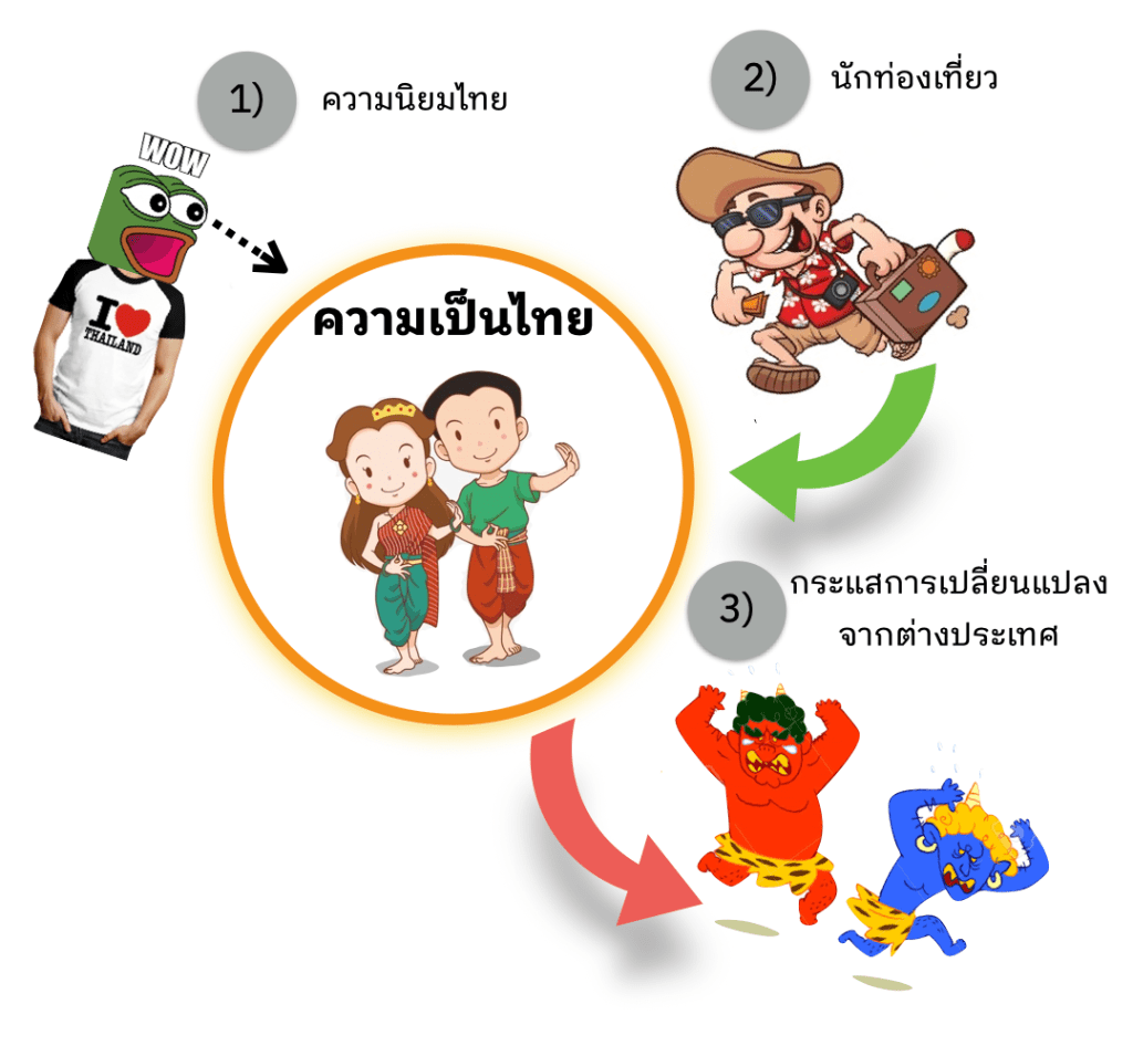 - คำว่า “ความเป็นไทย (Thainess)” ถูกใช้เป็นแนวทางและหลักการของโครงการซอฟต์พาวเวอร์ทั้งหมด โดยเฉพาะสาขาการท่องเที่ยว และสาขาภาพยนตร์ ละครและซีรีส์ ทว่าผมก็ไม่ทราบว่าความเป็นไทยในที่นี้มีนิยามอย่างไรบ้าง แต่หากดูจากเนื้อความใน แผนแม่บทภายใต้ยุทธศาสตร์ชาติ (พ.ศ.2566-2580) จะพอเข้าใจได้ว่าความหมายของคำดังกล่าวมุ่งเน้นไปที่วัฒนธรรมไทยแบบดั้งเดิม ดังระบุใน 3 ประเด็นของแผนฯ คือ