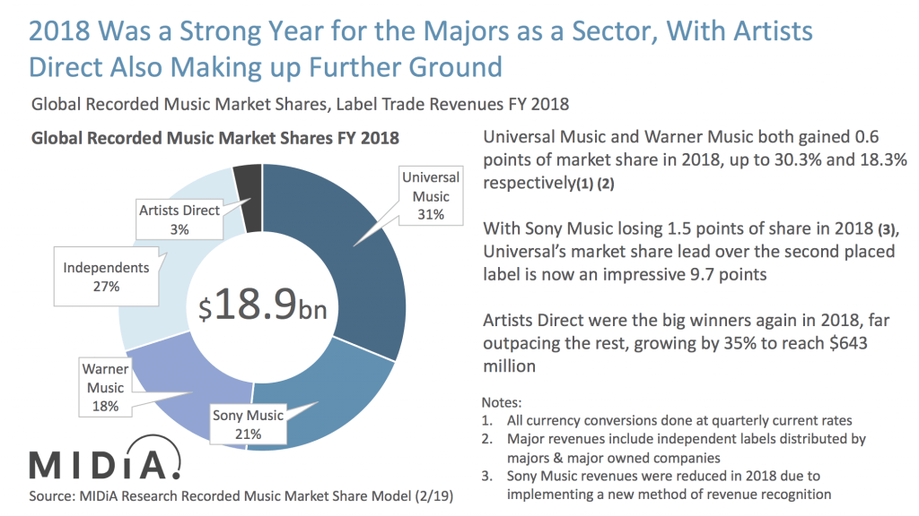 หากเราปล่อยให้ผู้บริโภคได้ตัดสินใจเองว่าเขาต้องการซื้ออะไร (หรือในความเป็นจริงแล้ว คือสิ่งที่เขาคิดว่าต้องการซื้ออันสืบเนื่องมาจากกลไกทางการตลาด) มันมักจะเป็นธรรมชาติที่ผู้บริโภคจะเลือกซื้อสิ่งที่ถูกผลิตโดยบริษัทขนาดใหญ่ รวมทั้งในตลาดดนตรีด้วย อย่างเช่นสัดส่วนการครองตลาดของอุตสาหกรรมดนตรีนั้น บริษัทค่ายเพลงที่ใหญ่ที่สุด 3 อันดับนั้น เมื่อรวมกันแล้วเป็นถึง 70% ของอุตสาหกรรมสิ่งบันทึกเสียงทั้งหมดเลยทีเดียว